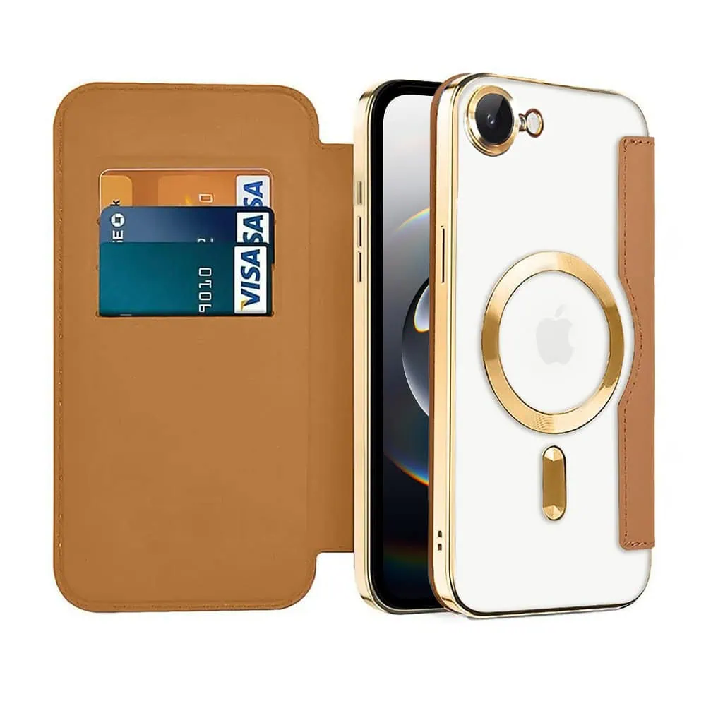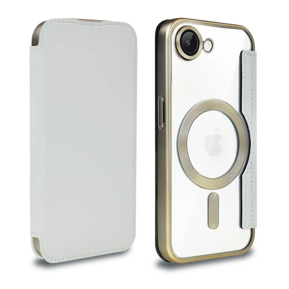 Etui do iPhone 16e typu książka Book MagSafe Lens Protect, z klapką, złote