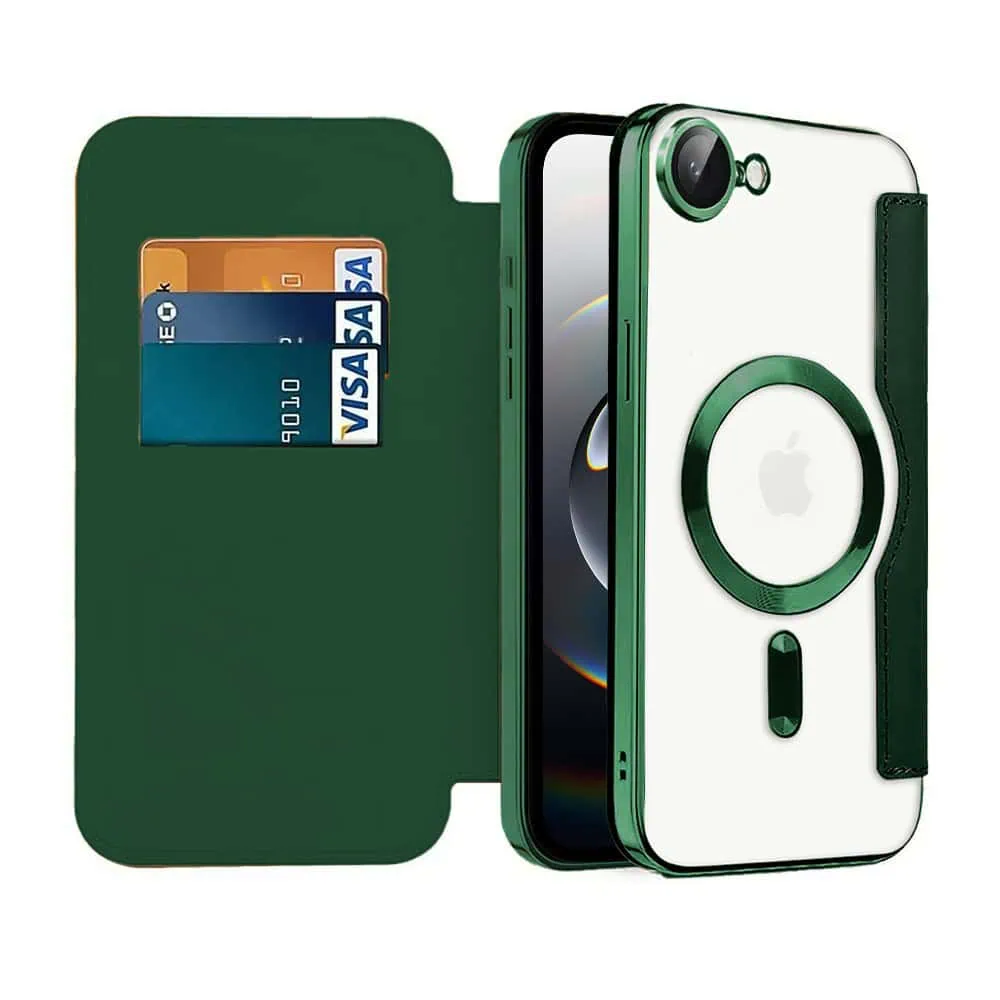 Etui do iPhone 16e typu książka Book MagSafe Lens Protect, z klapką, zielone