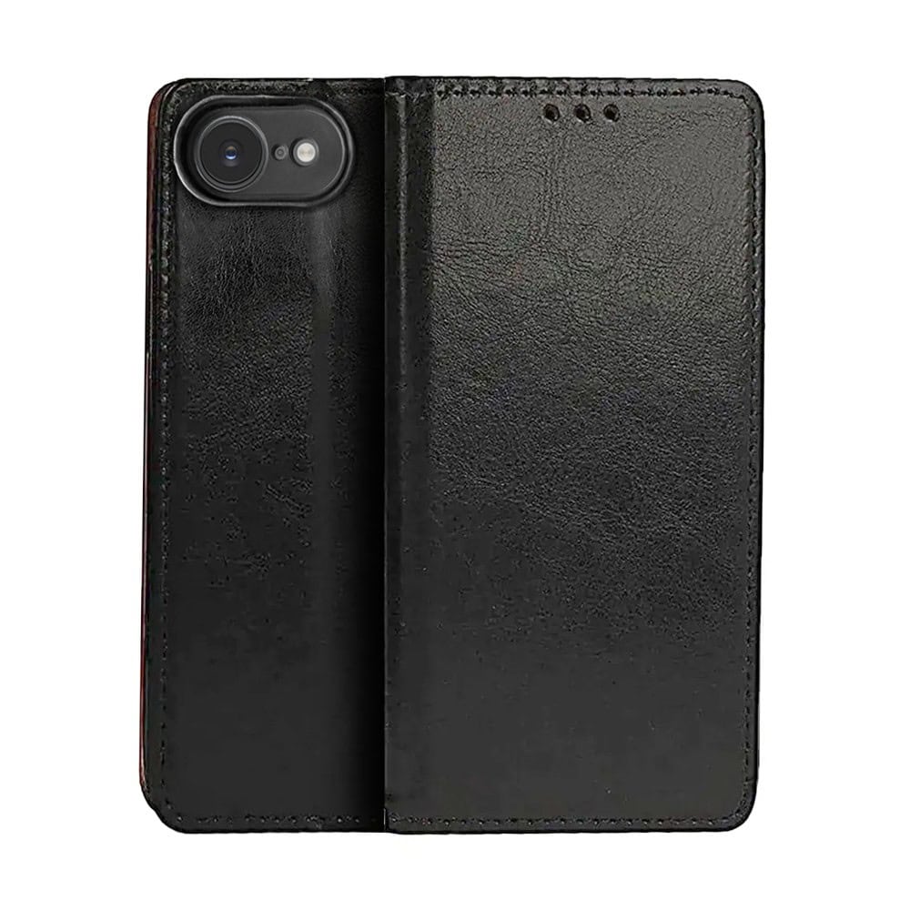 Etui do iPhone 16e zamykane, eleganckie skórzane, czarne