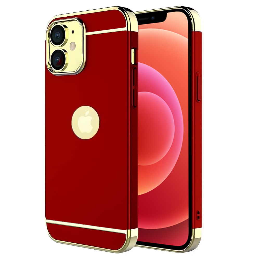 Etui do iPhone 12 eleganckie cienkie ze zdobieniami i widocznym logo, czerwone (OUTLET)
