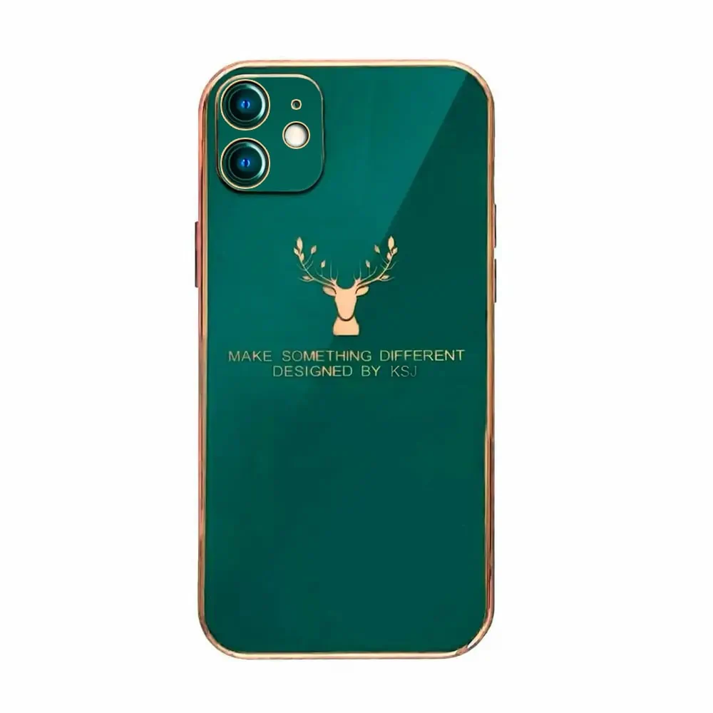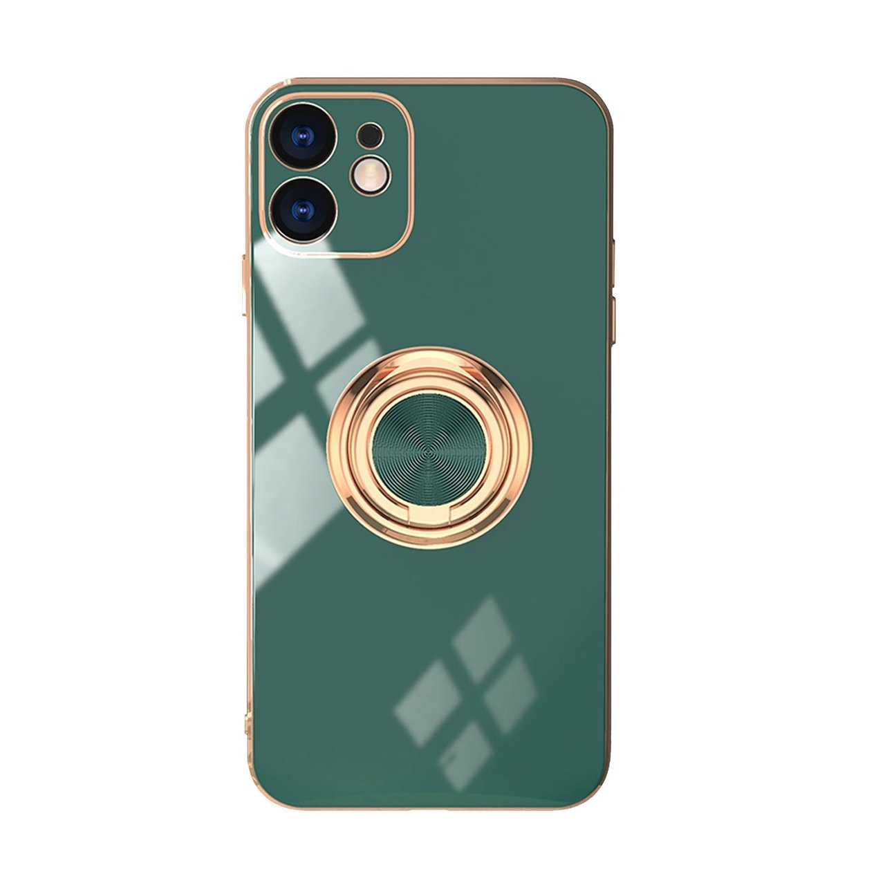 Etui do iPhone 12 eleganckie, ze złotym, metalowym uchwytem i zdobieniami, z osłoną na aparat, zielone deep green (OUTLET)