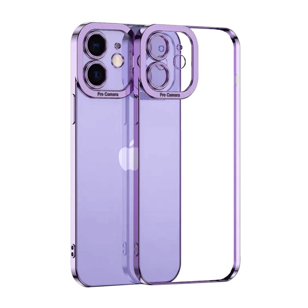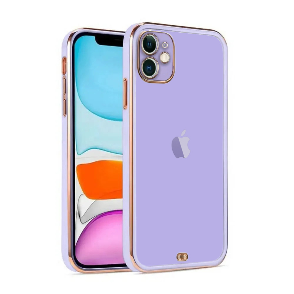 Etui do iPhone 12 Fashion Gold przeźroczysty tył, pozłacane elementy, osłona na aparat, fioletowa ramka (OUTLET)