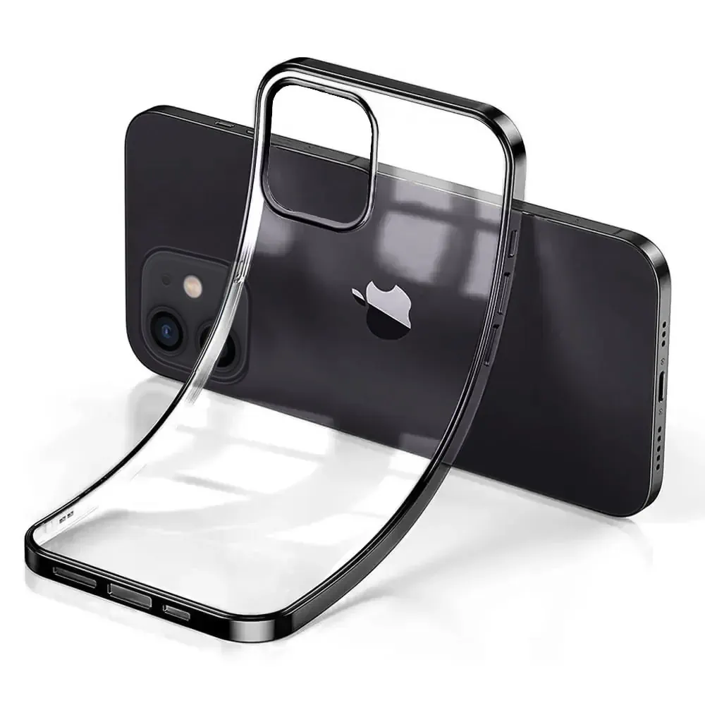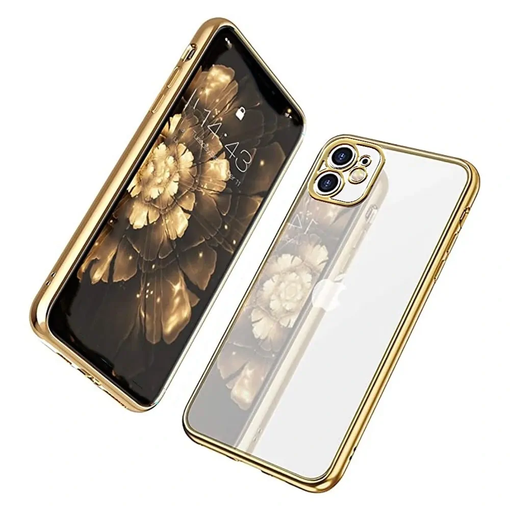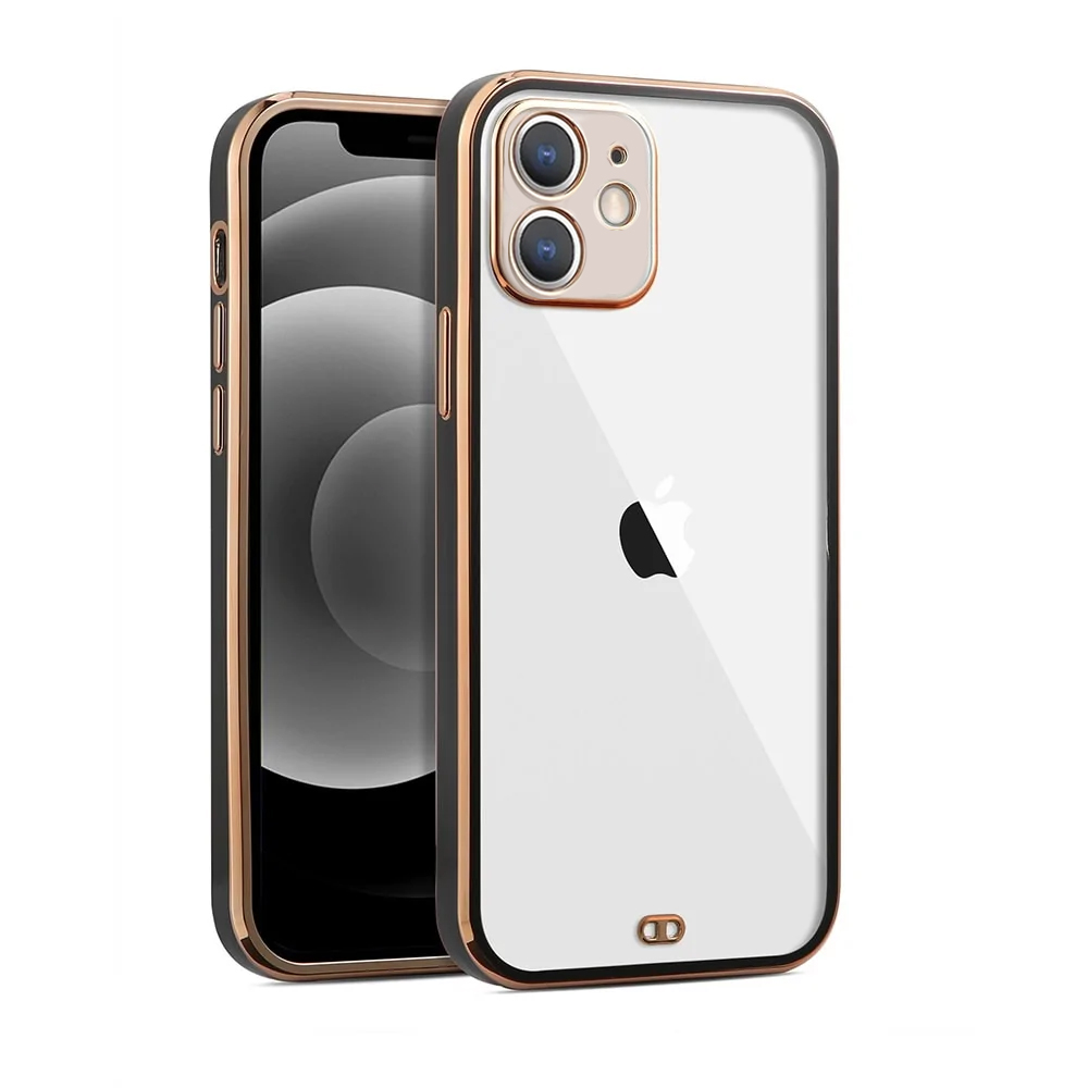 Etui do iPhone 12 Fashion Gold przeźroczysty tył, pozłacane elementy, osłona na aparat, czarna ramka (OUTLET)