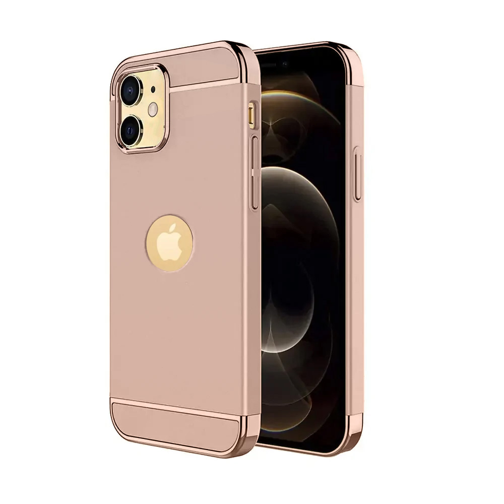 Etui do iPhone 12 eleganckie cienkie ze zdobieniami i widocznym logo, różowe złoto (OUTLET)