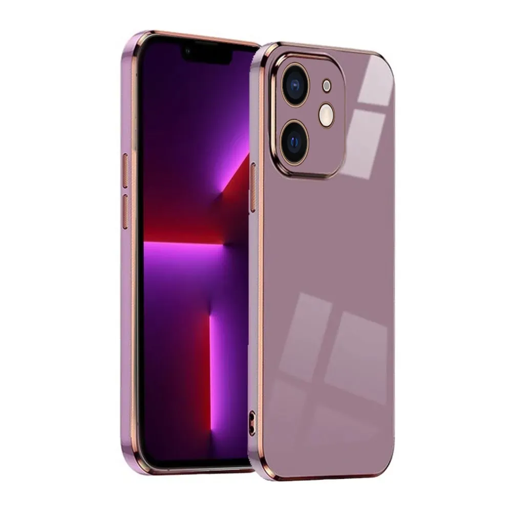 Etui do iPhone 12 luksusowe błyszczące ze złotą ramką i osłoną na aparat, purpurowe (OUTLET)