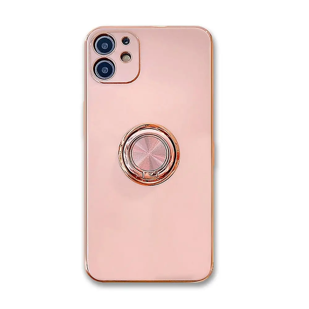 Etui do iPhone 12 eleganckie, ze złotym metalowym uchwytem i zdobieniami, z osłoną na aparat, złoty róż (OUTLET)
