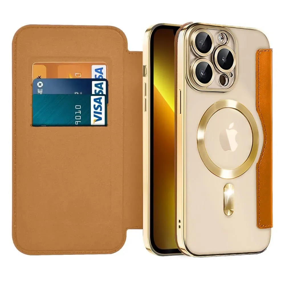 Etui do iPhone 13 Pro Max typu książka Book Magsafe Lens Protect, z klapką, złote (OUTLET)