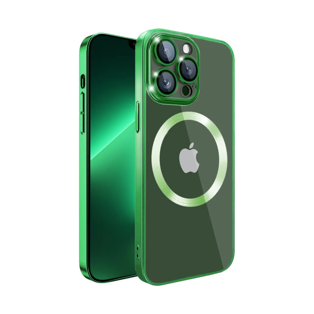 Etui do iPhone 13 Pro Max Slim Protect Full Cover MagSafe Hard Back, twardy tył, przeźroczyste, zielone (OUTLET)