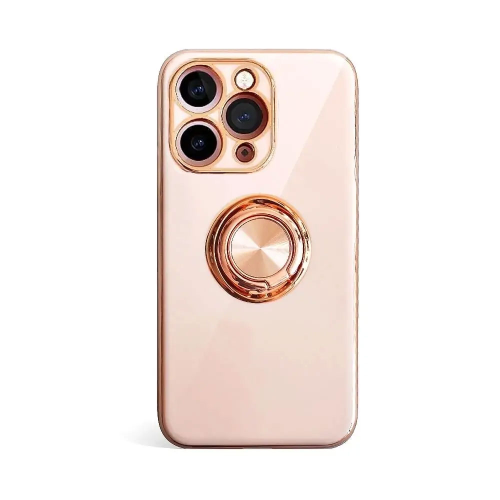 Etui do iPhone 13 Pro Max eleganckie, ze złotym, metalowym uchwytem i zdobieniami, z osłoną na aparat,złoty róż (OUTLET)