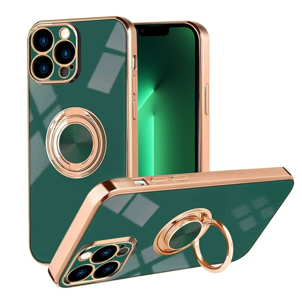 Etui do iPhone 13 Pro Max eleganckie, ze złotym, metalowym uchwytem i zdobieniami, zielone (OUTLET)