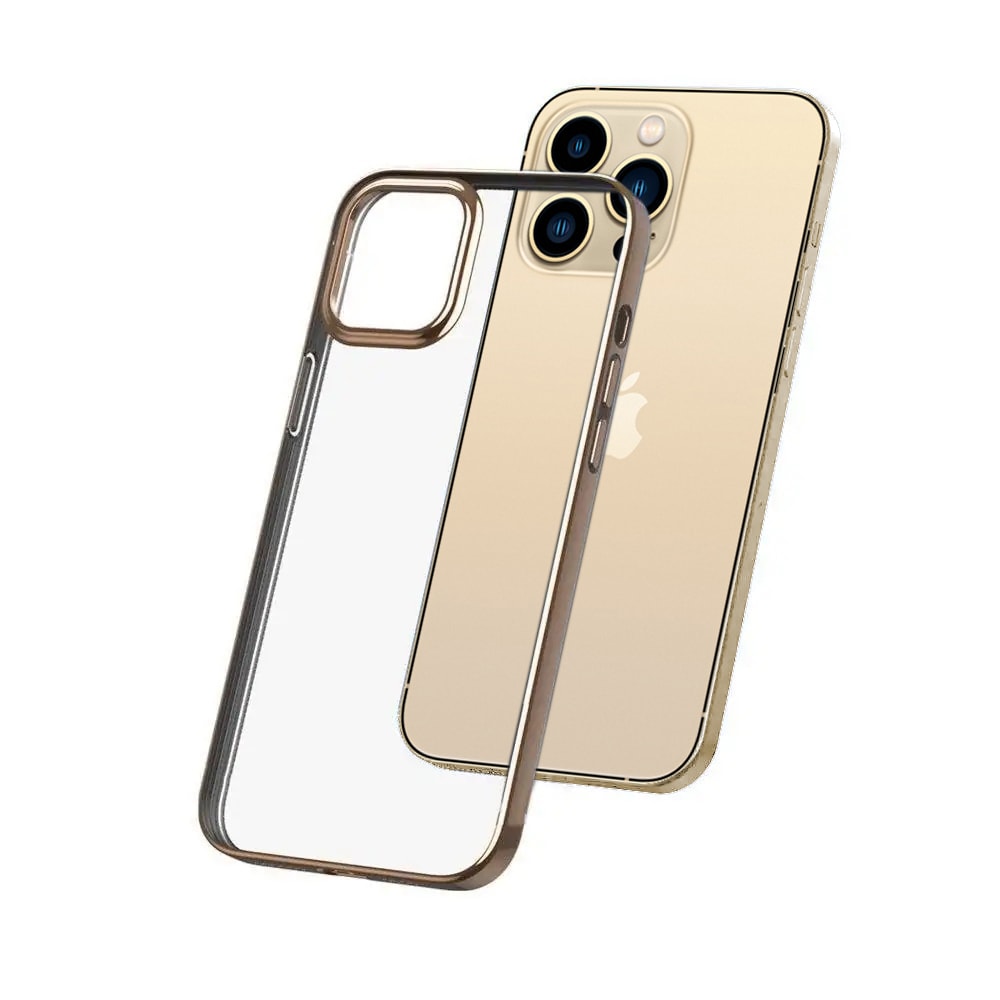 Etui do iPhone 13 Pro Max Ibizu Elite Skin, krystalicznie czyste z metalową ramką, złote (OUTLET)