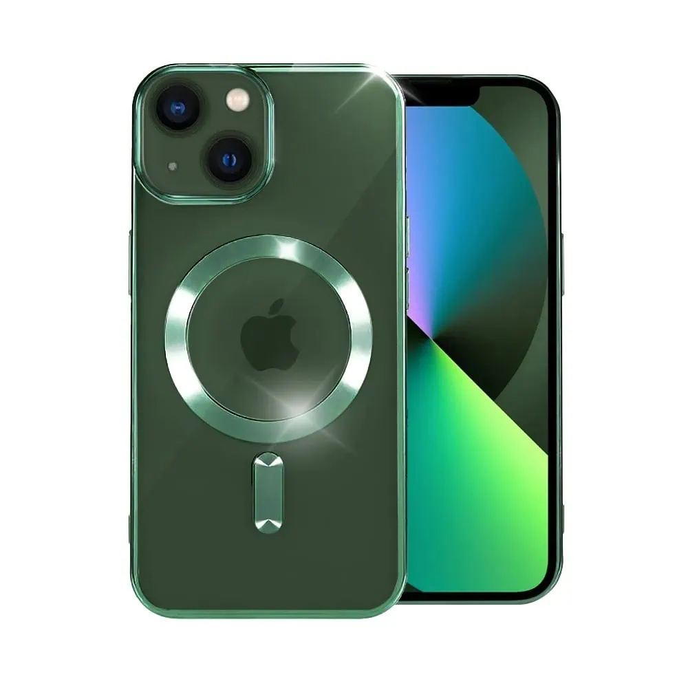 Etui do iPhone 13 MagSafe Luxury Protect przeźroczyste, hybrydowa ochrona kamery, alpejska zieleń (OUTLET)