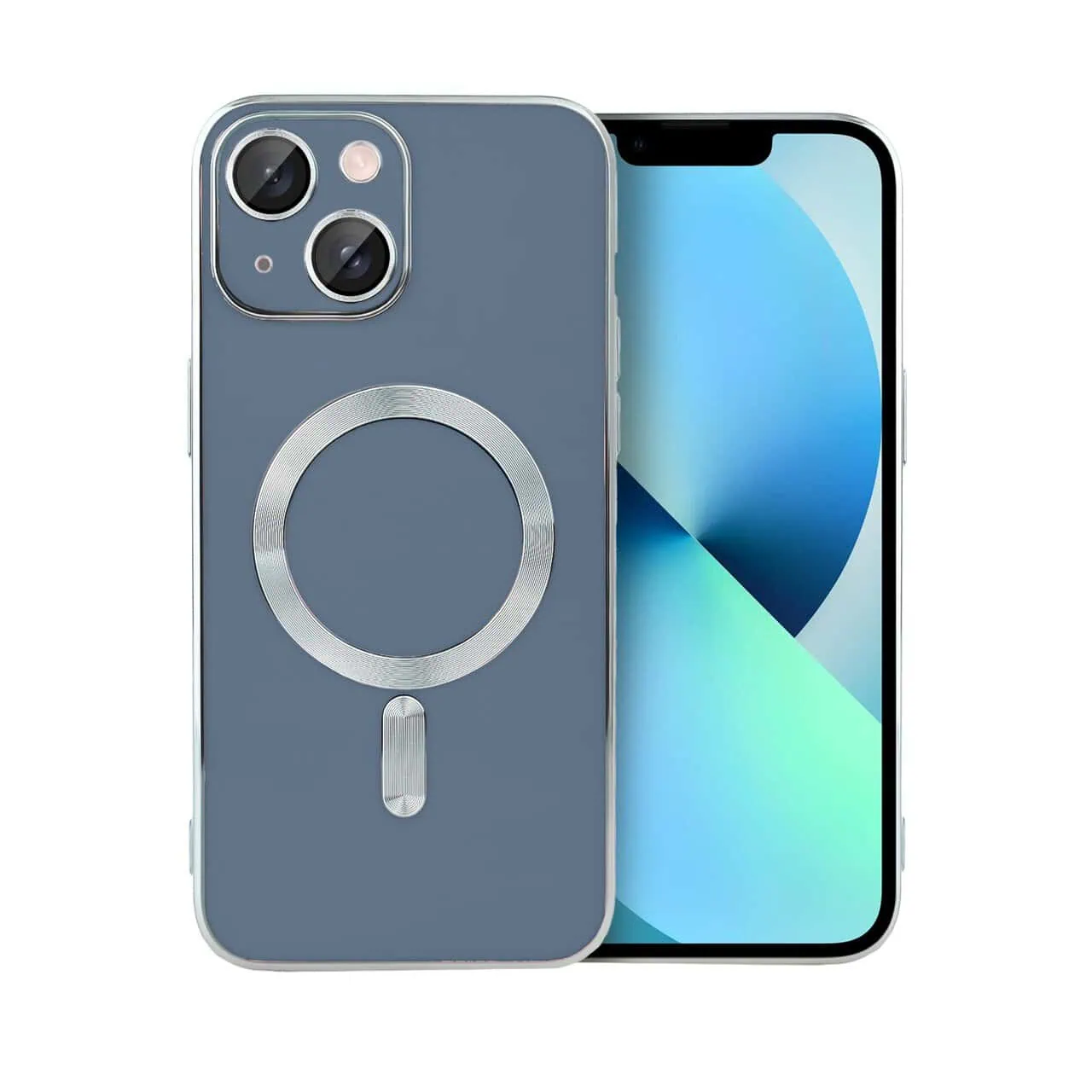 Etui do iPhone 13 Magsafe Silver Elegance, z osłoną aparatu, delikatnie niebieskie (OUTLET)