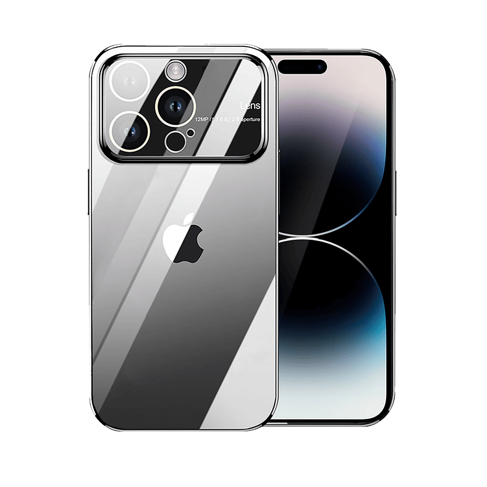 Etui do iPhone 14 Pro Max Premium Protect Full Cover z osłoną kamery i obiektywów 9H, krystaliczny tył, czarne grafitowe (OUTLET)