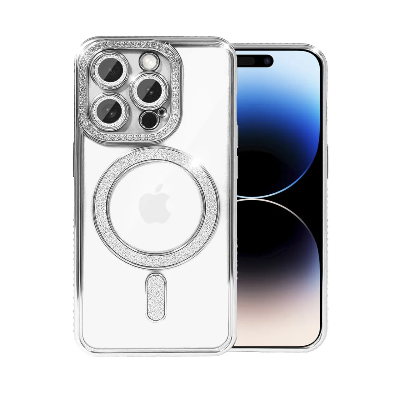 Etui do iPhone 14 Pro Max Diadem Glow, błyszczące z MagSafe, przeźroczyste, srebrne (OUTLET)