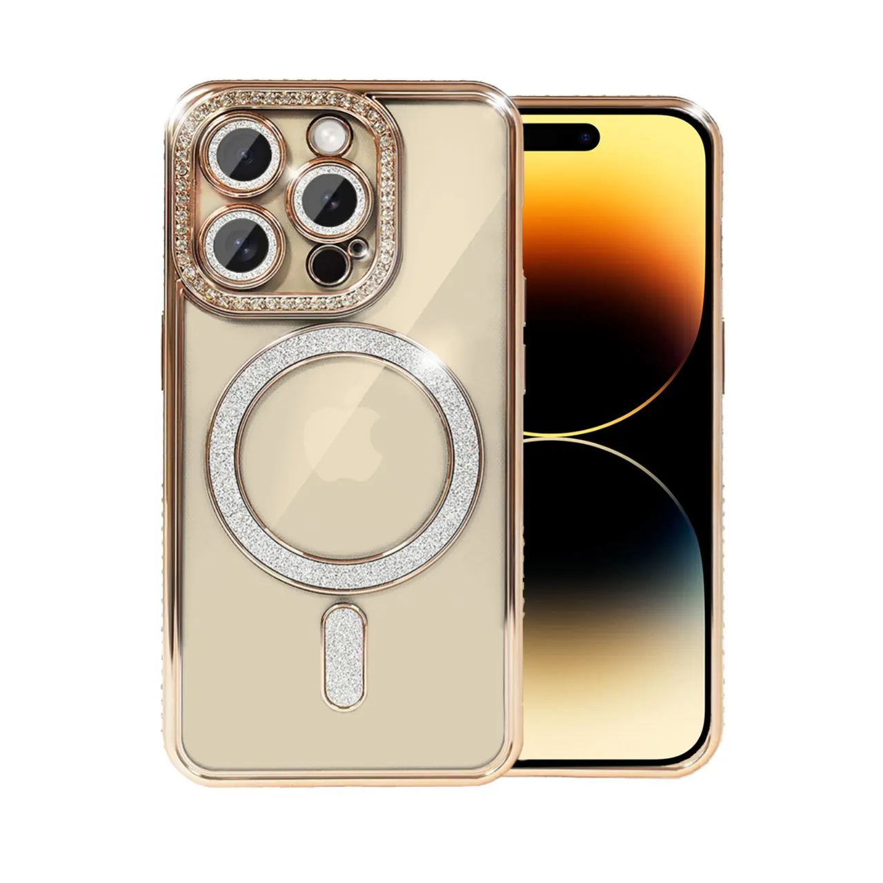 Etui do iPhone 14 Pro Max Diadem Glow, błyszczące z MagSafe, przeźroczyste, złote (OUTLET)