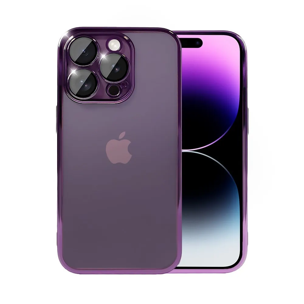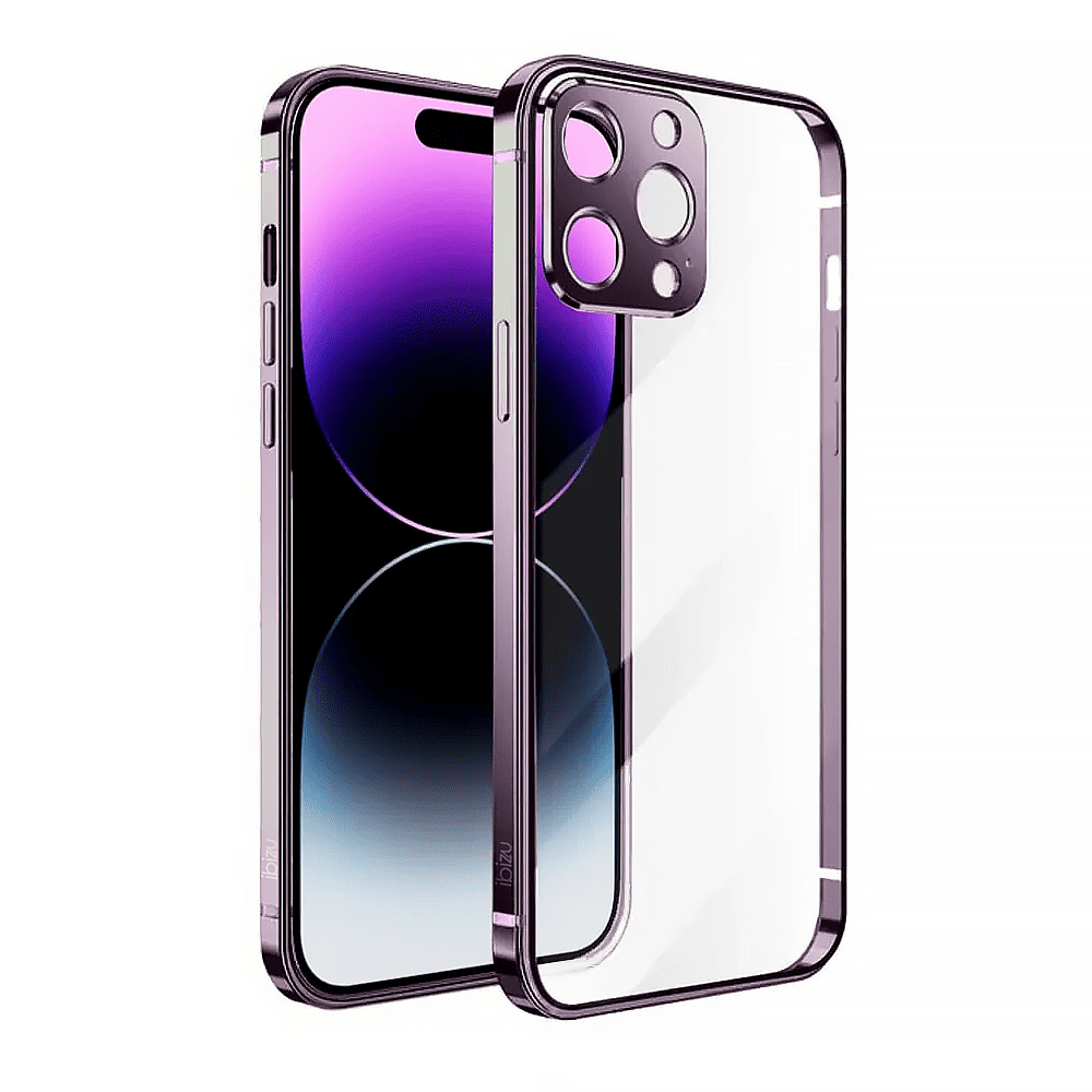 Etui do iPhone 14 Pro Max Ibizu Elite Skin, krystalicznie czyste z metalową ramką, głęboka purpura (OUTLET)