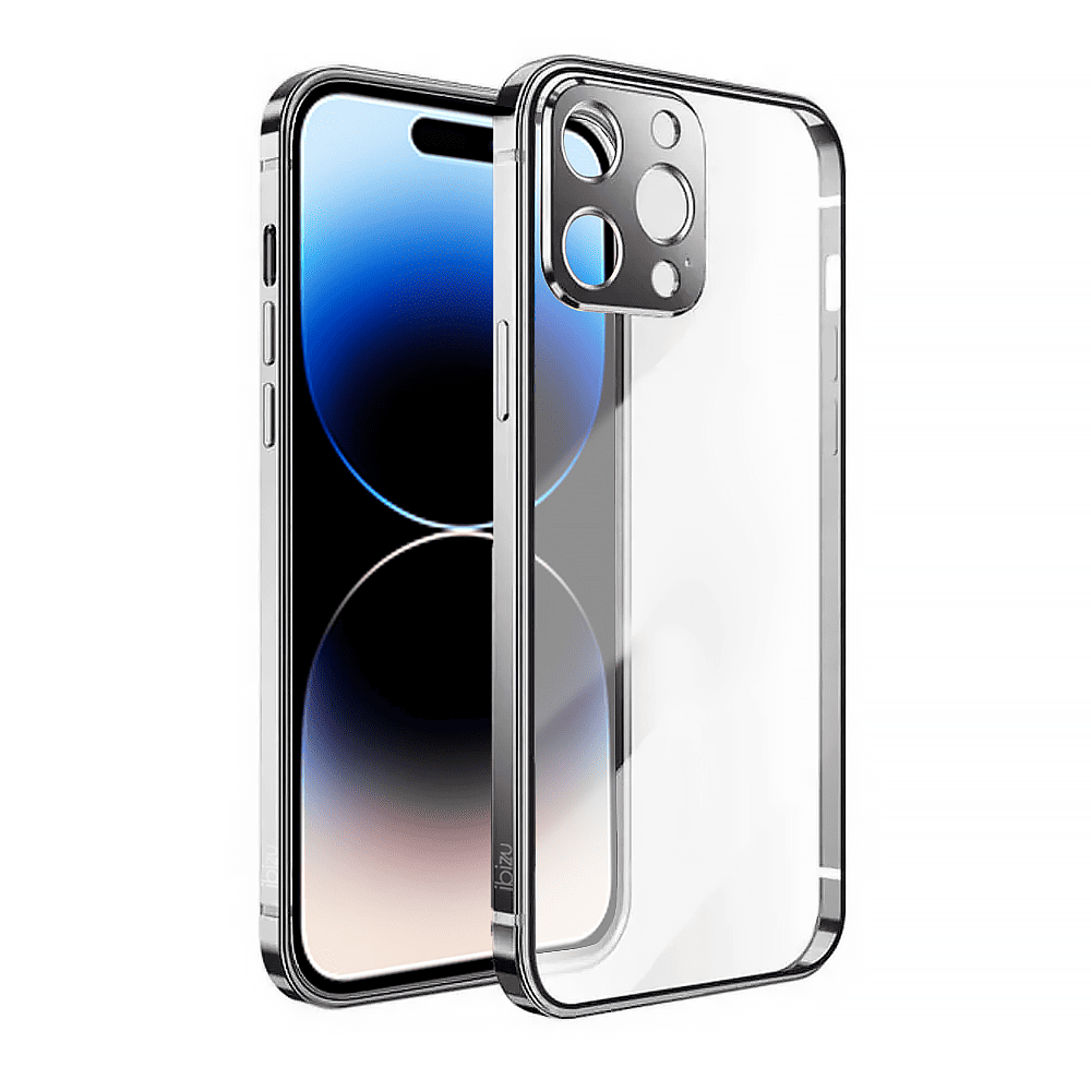 Etui do iPhone 14 Pro Max Ibizu Elite Skin, krystalicznie czyste z metalową ramką, srebrne (OUTLET)