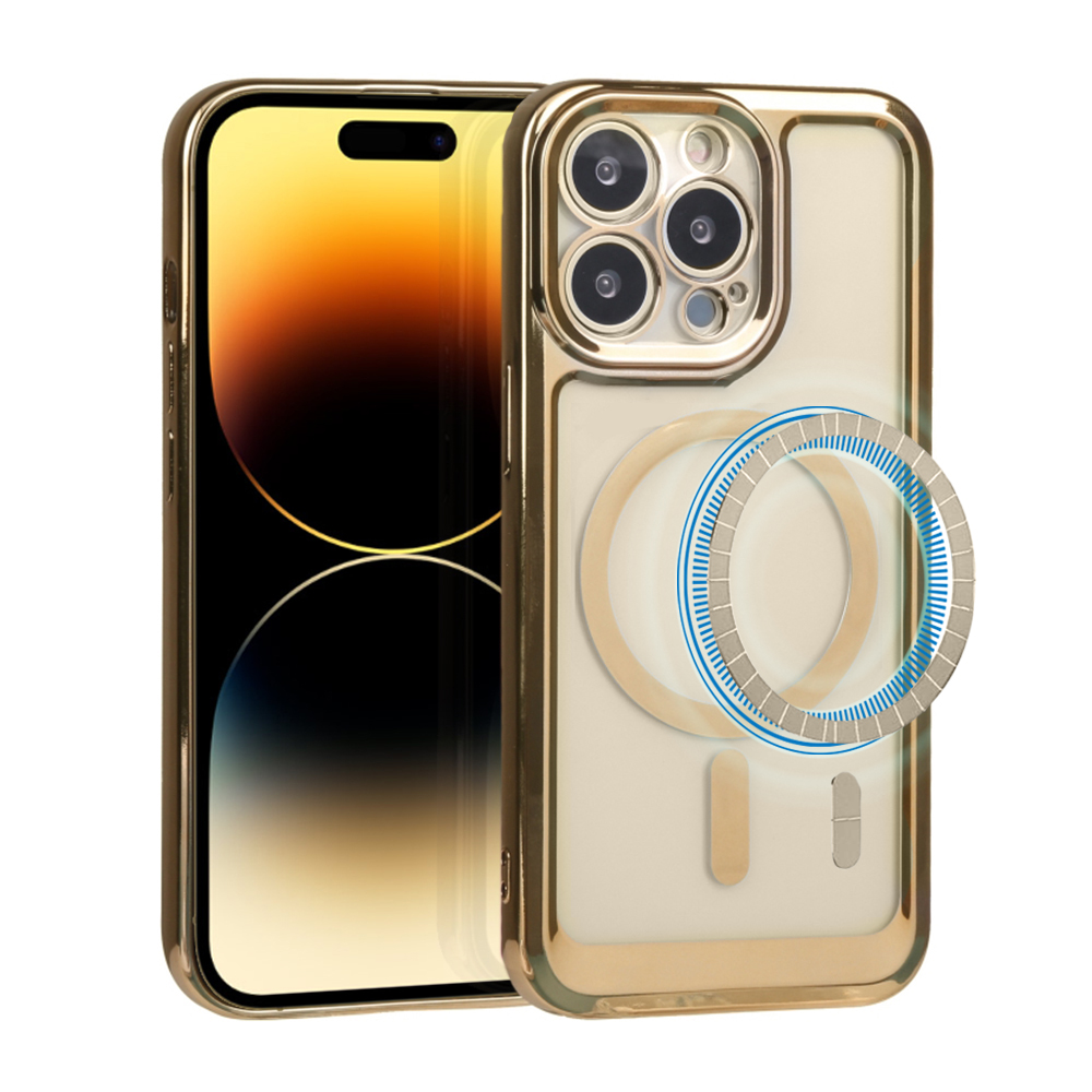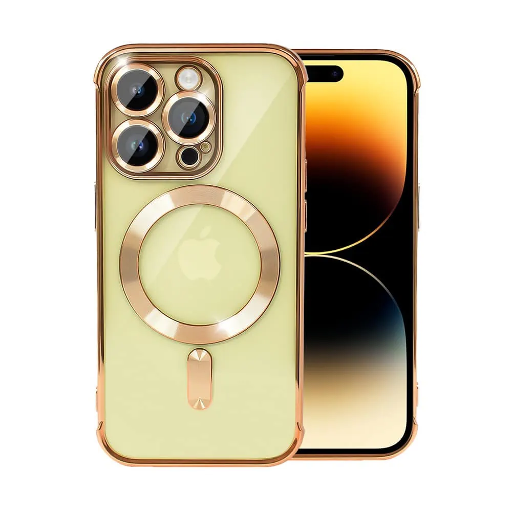 Etui do iPhone 14 Pro Max MagSafe Luxury Protect przeźroczyste, hybrydowa ochrona kamery, złote (OUTLET)