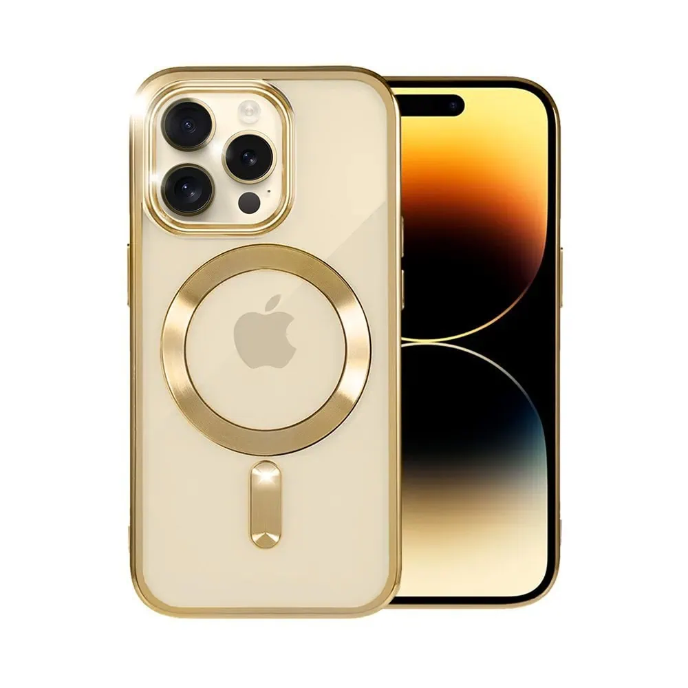 Etui do iPhone 14 Pro Max Magsafe Luxury przeźroczyste, złote (OUTLET)