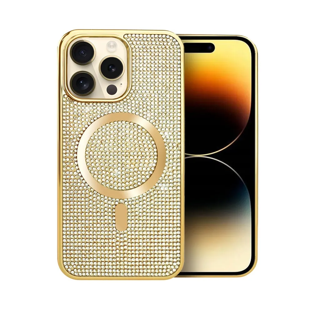 Etui do iPhone 14 Pro Max Magsafe Tresury Case, diamentowe, z błyszczącą ramką, złote (OUTLET)