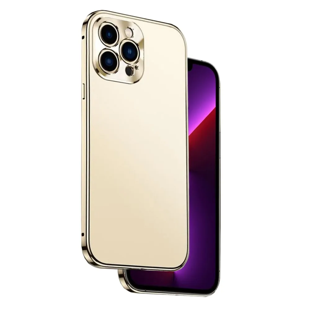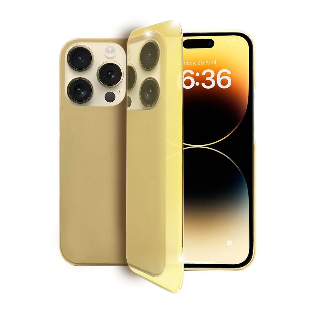Etui do iPhone 14 Pro Max Luxury Skin ultra cienkie, pełny tył z metalową ramką, złote platynowe (OUTLET)