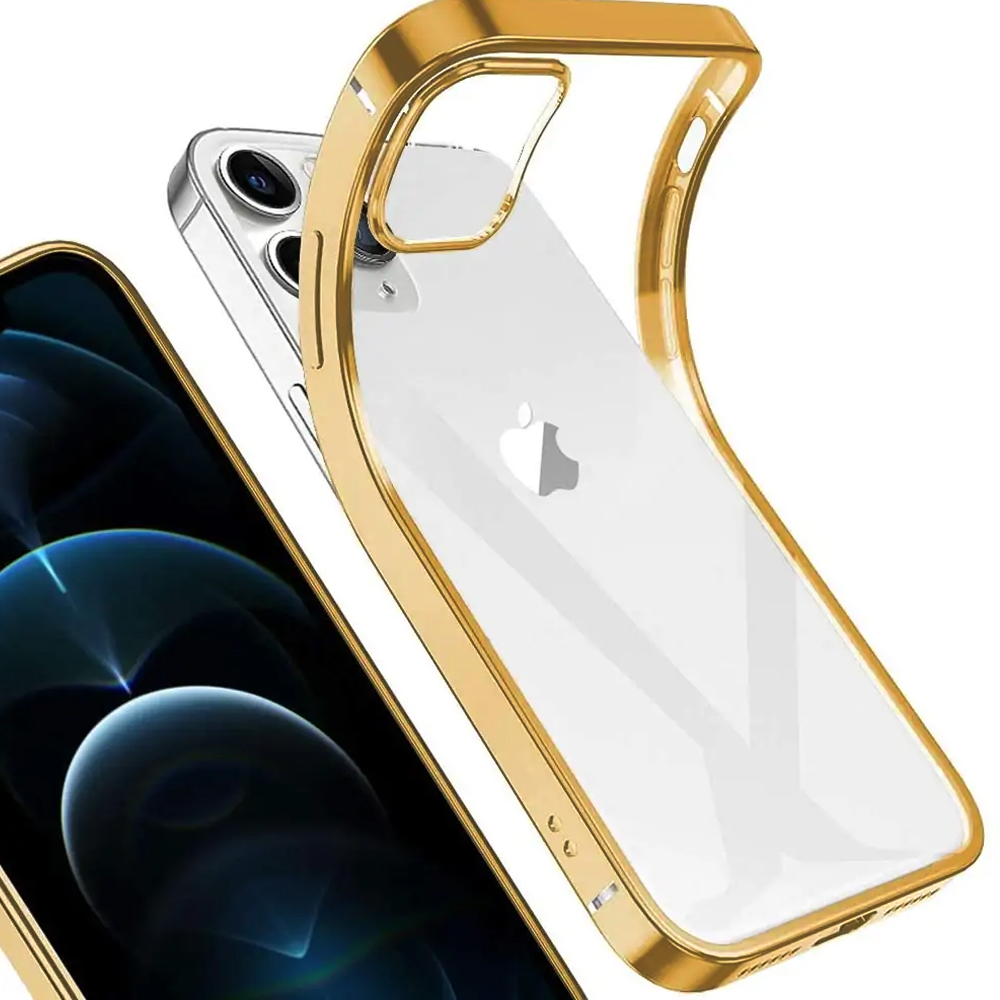 Etui do iPhone 14 Pro Max JETech Simple Metallic gold przeźroczyste z ramką w kolorze złota (OUTLET)