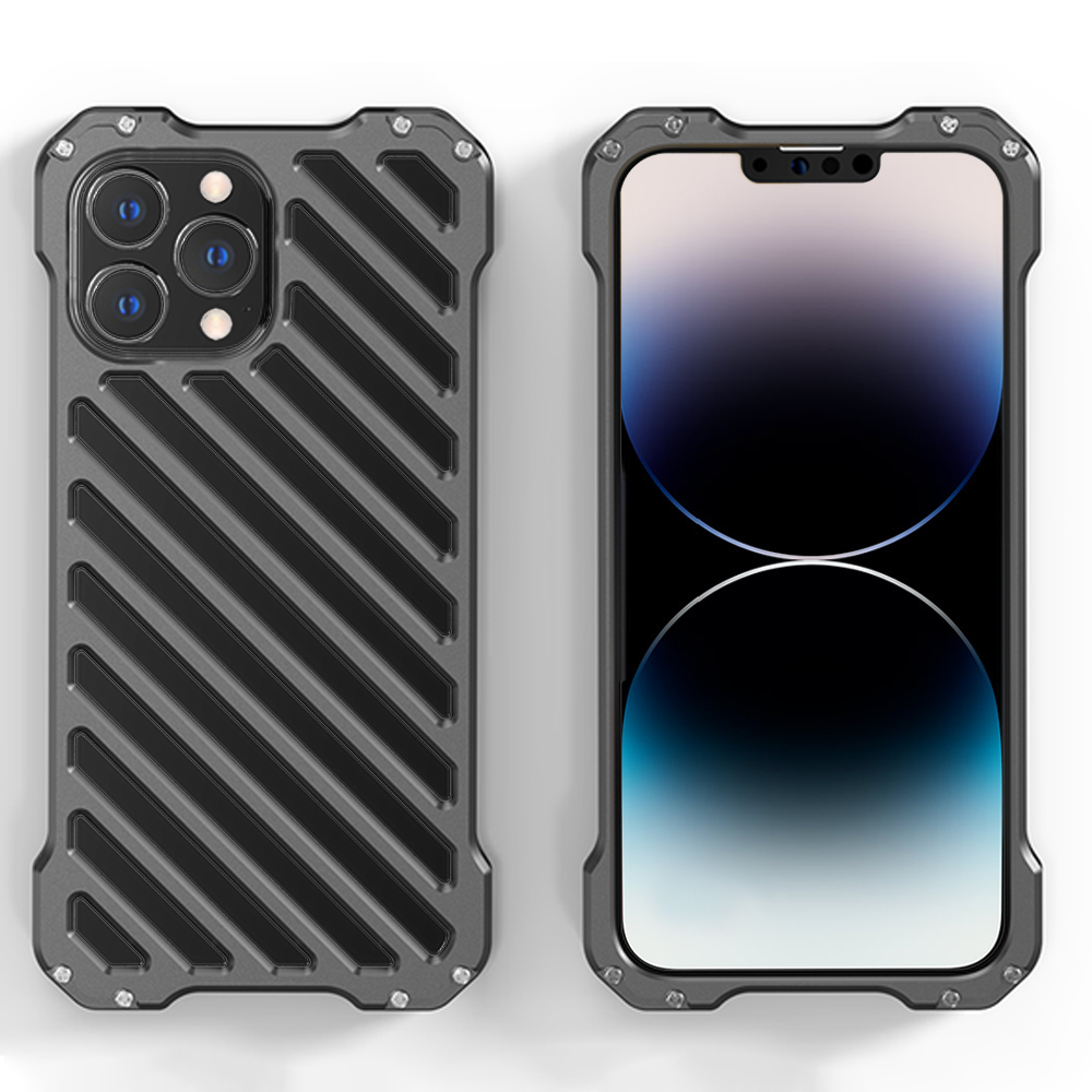 Etui do iPhone 14 Pro Max pancerne, metalowe, skręcane, srebrne (OUTLET)