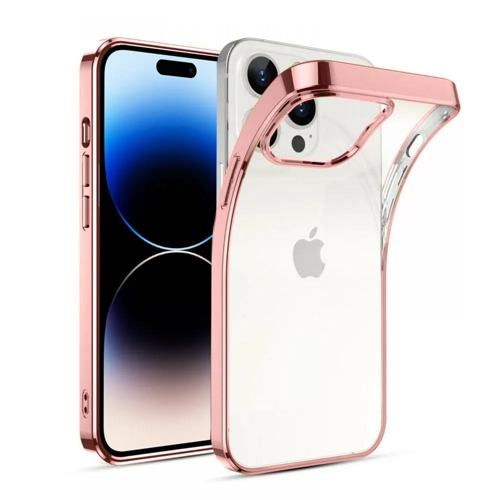 Etui do iPhone 14 Pro Max JETech Simple Metallic rose gold przeźroczyste z ramką w kolorze różowego złota (OUTLET)