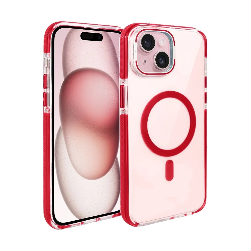 Etui do iPhone 15 Plus Hard Color MagSafe, twardy krystaliczny tył, z podstawką, czerwone (OUTLET)