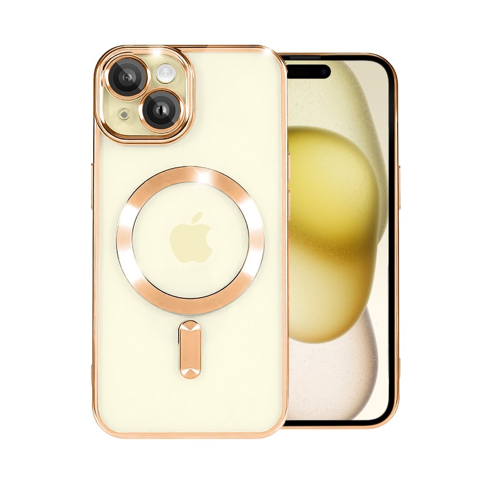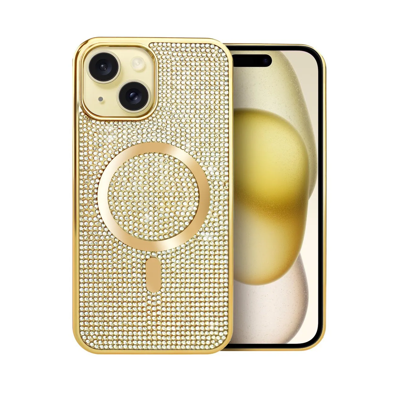Etui do iPhone 15 Plus Magsafe Tresury Case, diamentowe, z błyszczącą ramką, złote (OUTLET)