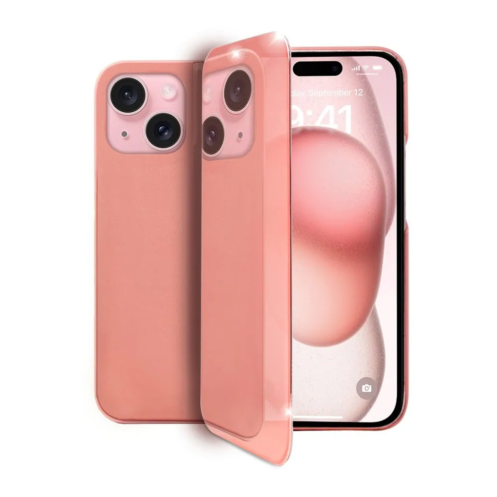 Etui do iPhone 15 Plus Mirror View zamykane typu książka, eleganckie lustrzane, różowe (OUTLET)