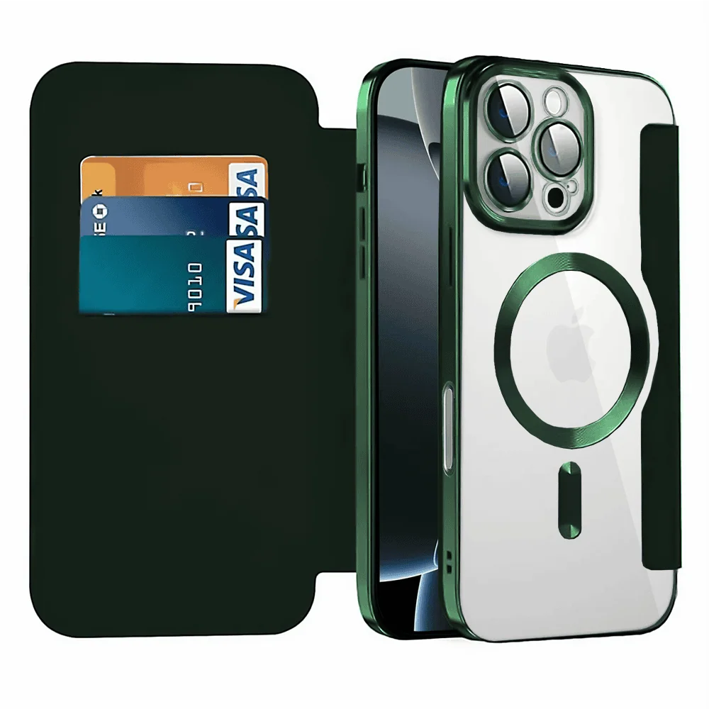 Etui do iPhone 16 Pro Max typu książka Book Magsafe Lens Protect, z klapką, zielone (OUTLET)
