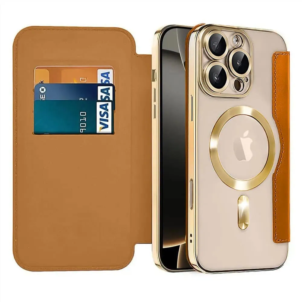 Etui do iPhone 16 Pro Max typu książka Book Magsafe Lens Protect, z klapką, złote (OUTLET)