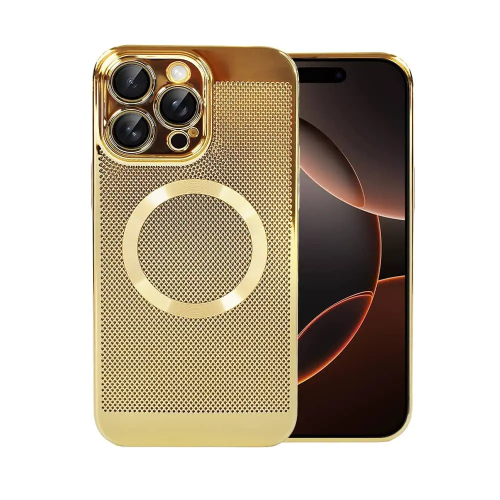Etui do iPhone 16 Pro Max z Magsafe, cienkie, twarde, oddychające, z osłoną aparatu, złote (OUTLET)